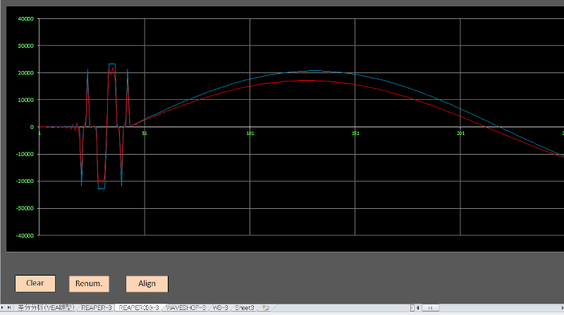 WaveCompareにて比較します。差分を元にエクセルのグラフを作ります。