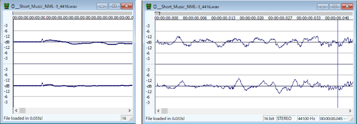 何か判るかもしれません。16ビット量子化データは±32767ですし、十分エクセルで扱えます。